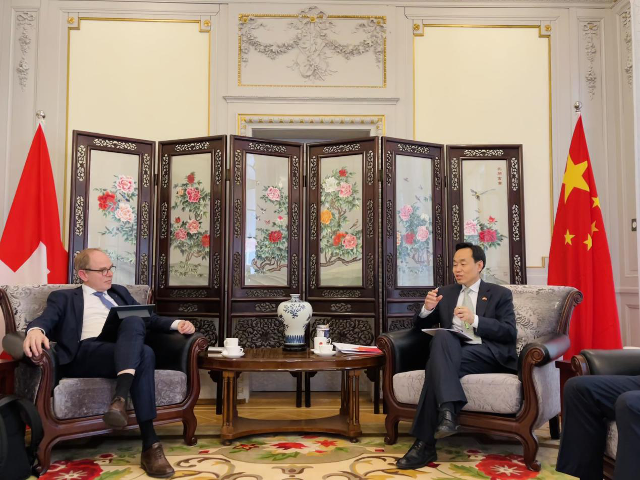 驻瑞士大使王世廷会见瑞士创新园首席执行官孔瑞蒙